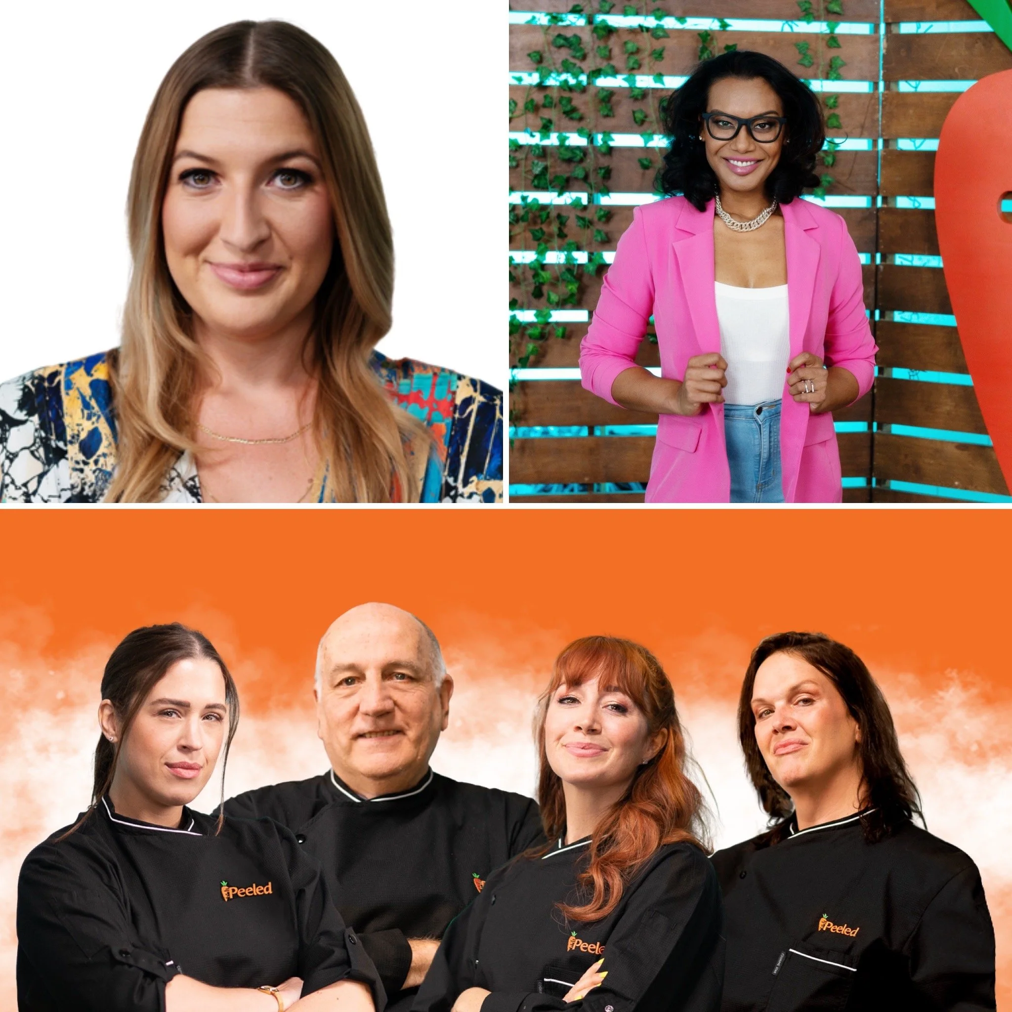 Top Left- Chef Josie Clemens, Top Right-Shabnam Islam, host of Peeled, Bottom-The Chefs
